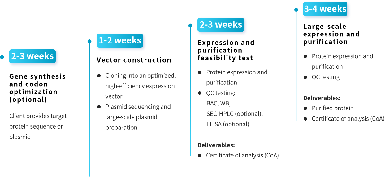 Multiple expression systems — includingE. coli, yeast, HEK293, and baculovirus insect cells (One-Bac 4.0)— enable customproteindevelopment tailored to client needs